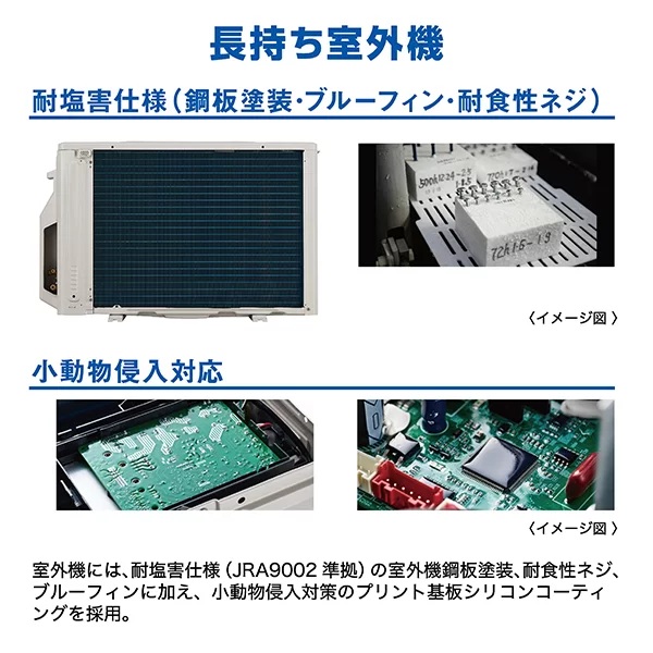 ■ サビや腐食を抑える耐塩害仕様の「長持ち室外機」